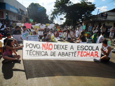 Cadê o respeito com a população? Cadê a ética, a moralidade e a transparência? Afinal, tá faltando ou tá sobrando dinheiro? Chega de fazer FARRA com o dinheiro Público. Nós não vamos parar! Abaeté acordou!'' (Ana Paula Sousa)